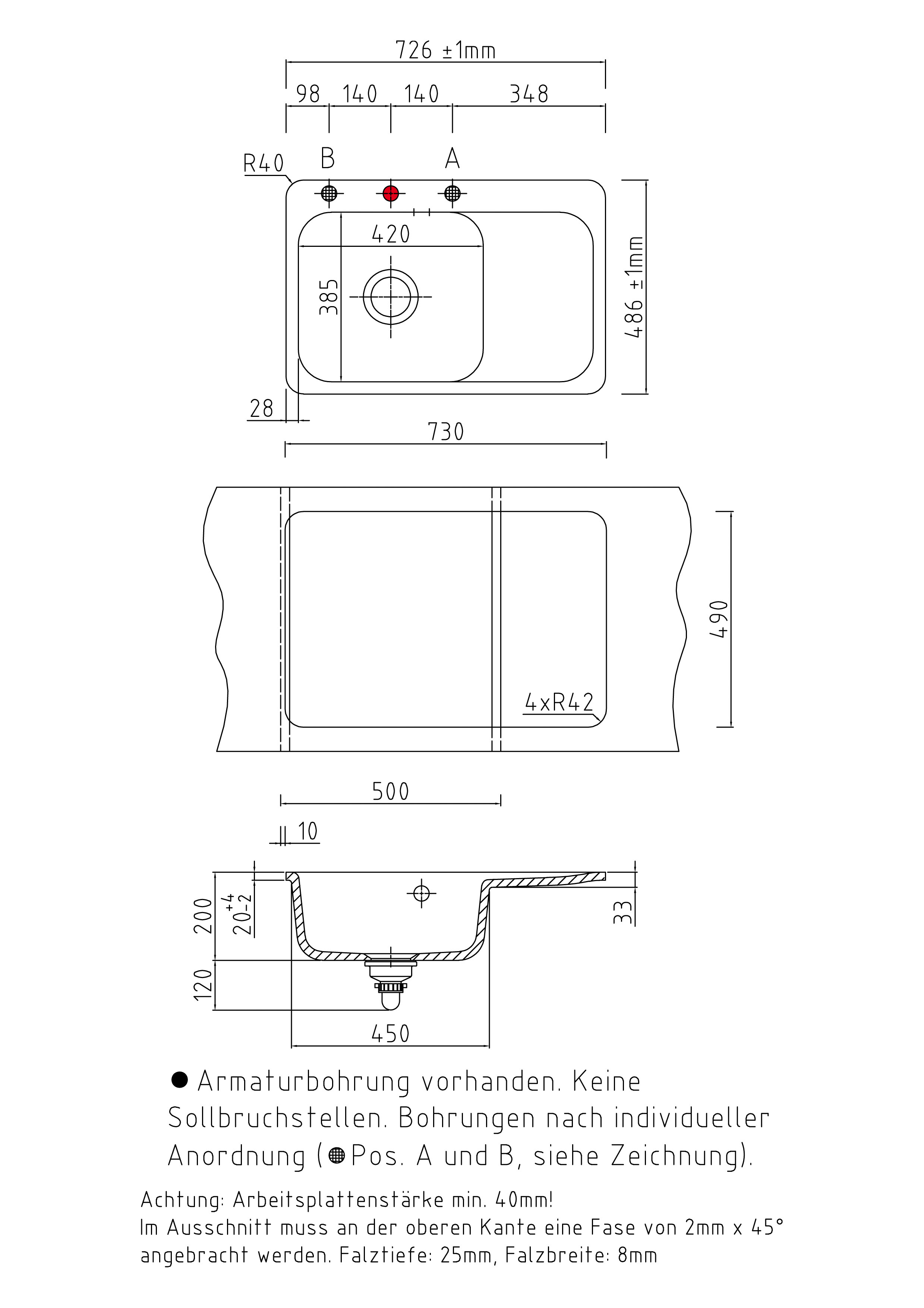 | Bitte unbedingt die gewünschte(n) Position(en) der Lochbohrung(en) in der Box "Sonderzubehör" auswählen! |